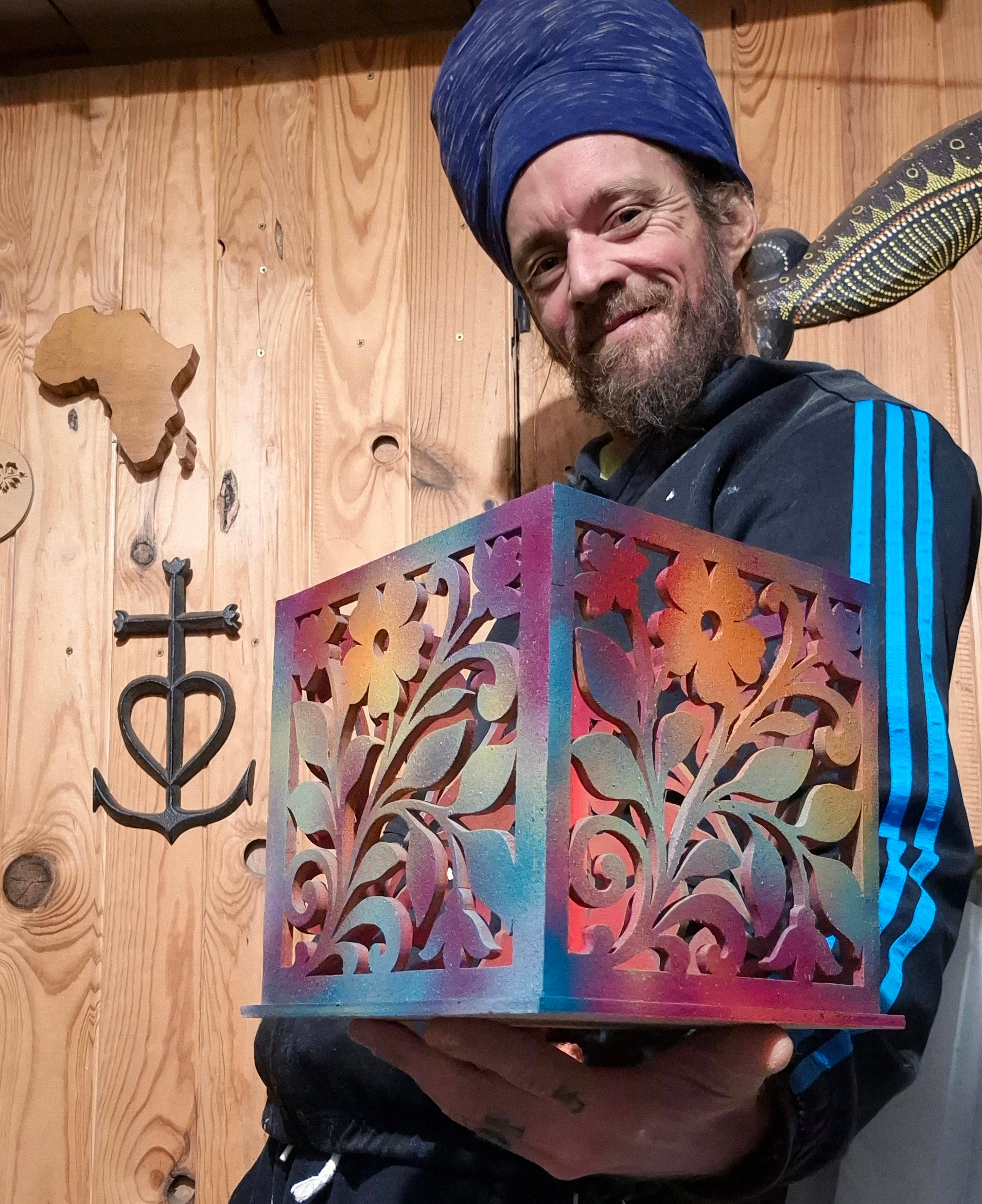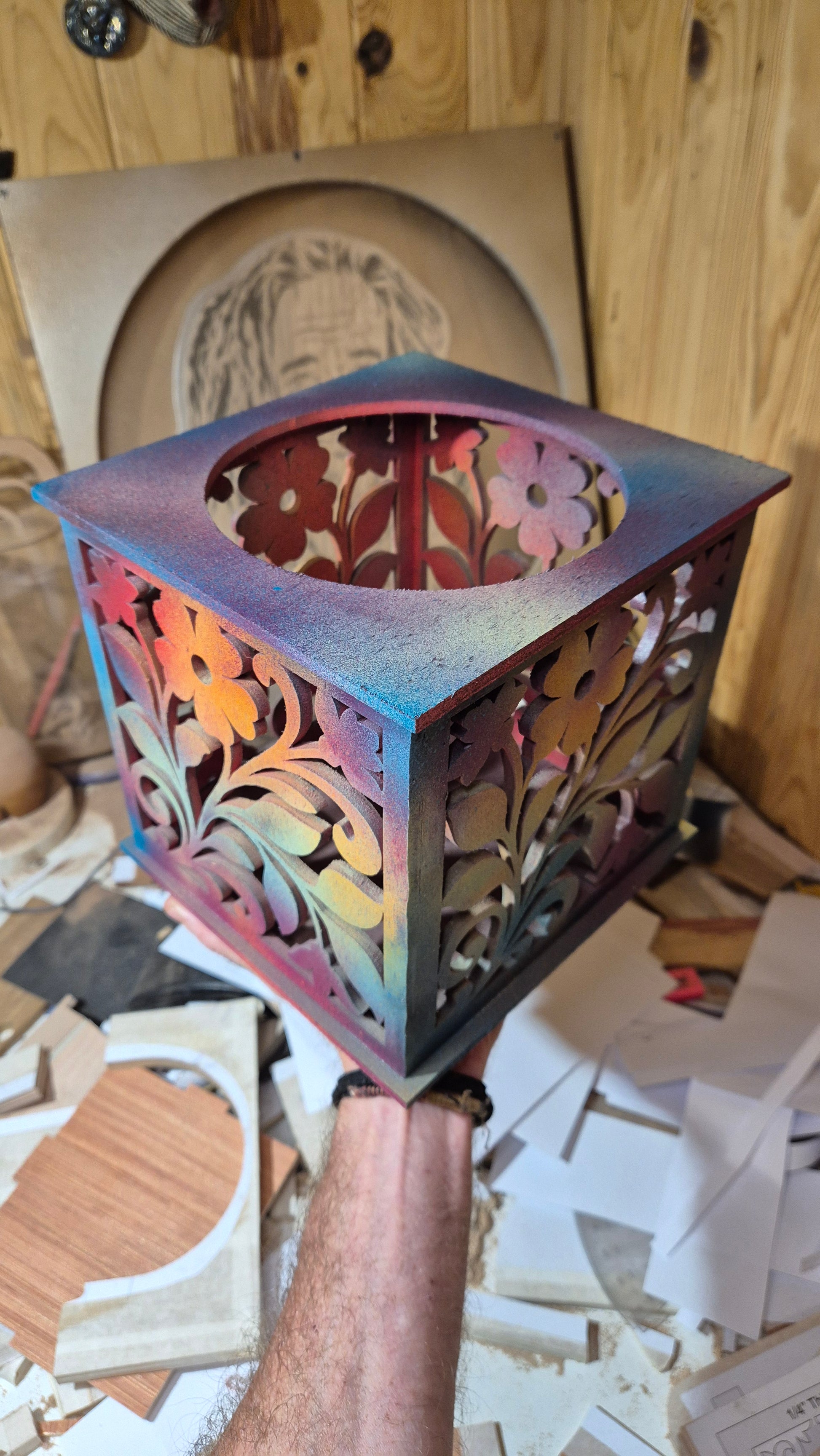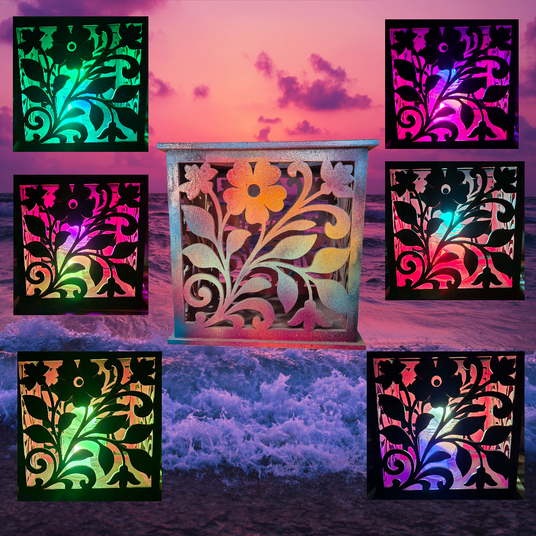 Lampe d’ambiance en bois peint à la main– Dentelle de lumière