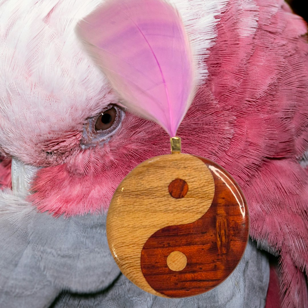 🌿 Magnet Yin-Yang en bois et petites plumes – fait main