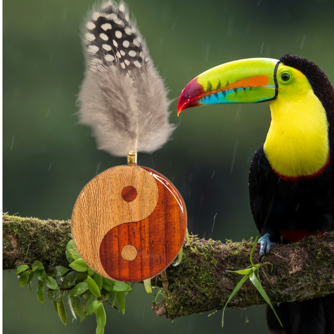 🌿 Magnet Yin-Yang en bois et petites plumes – fait main